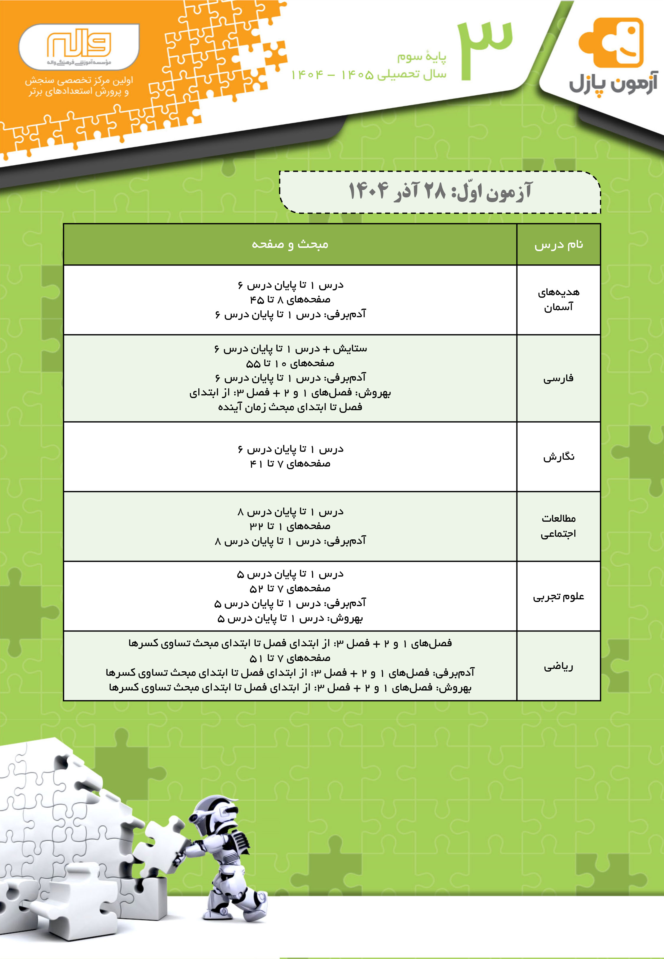 آزمون 1 پایه سوم(پازل)