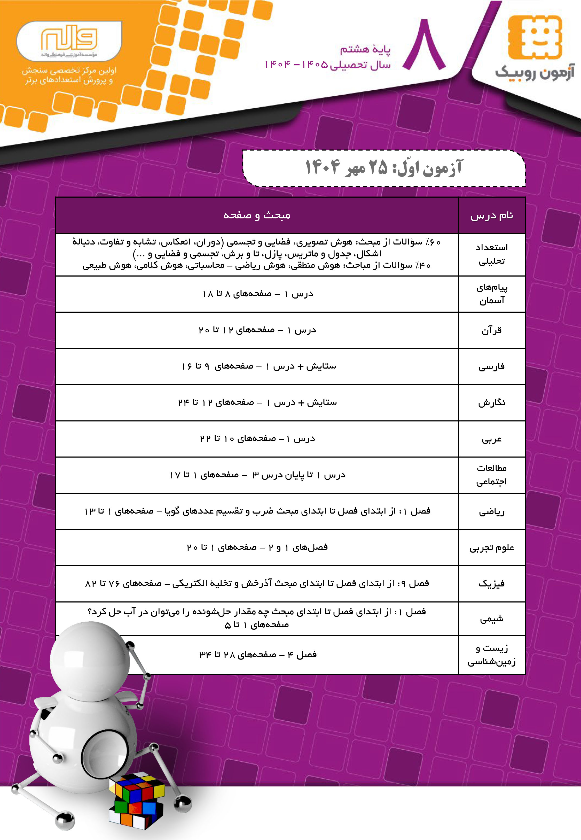 آزمون 1 پایه هشتم (روبیک)